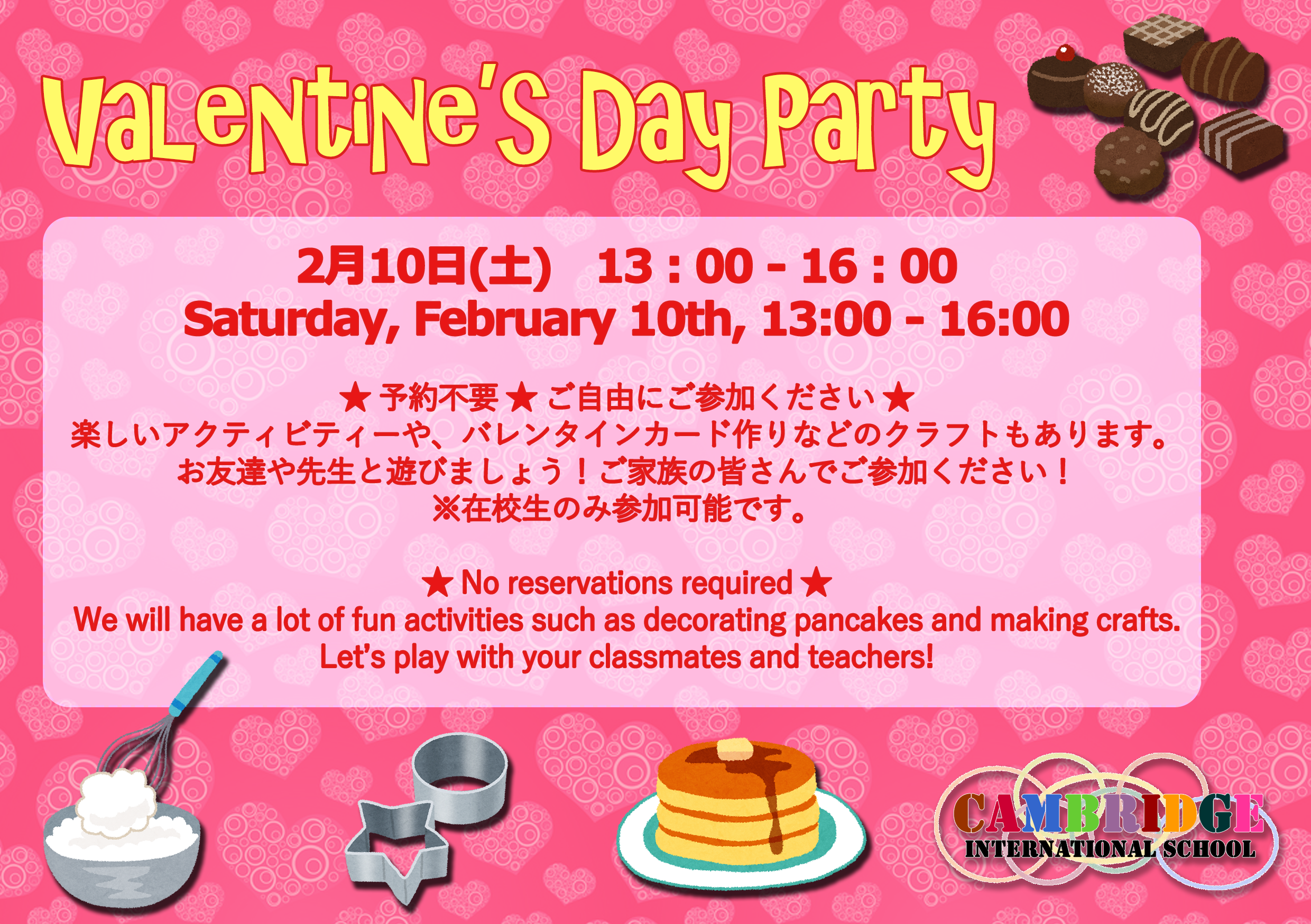 We will be having a Valentine’s Day Party on Saturday, February 10th!