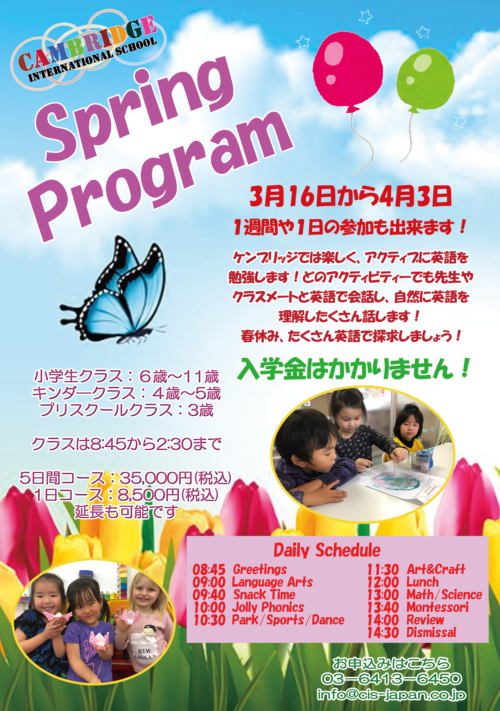 2020年のSpring Programは3月16日(月)~4月3日(金)です。